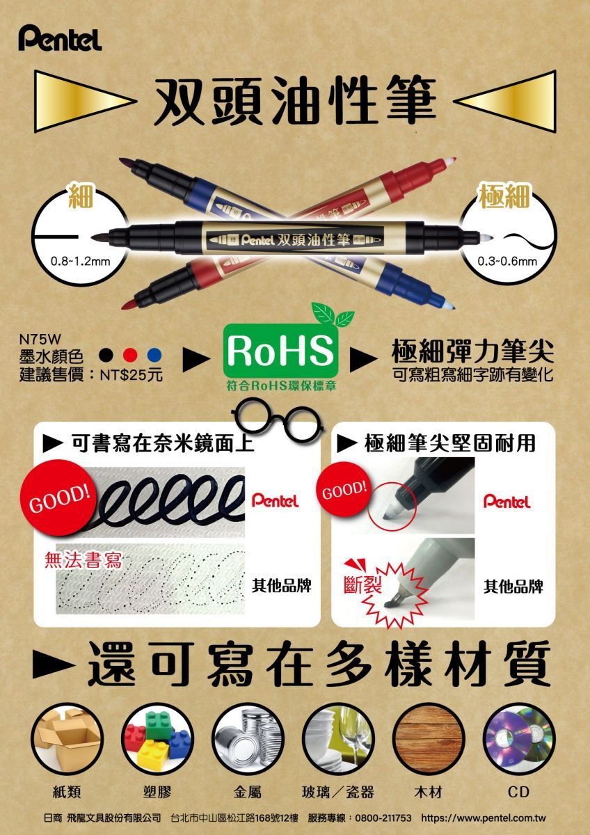 PENTEL 飛龍 雙頭 油性筆 簽字筆 奇異筆 麥克筆 粗 細 N75W